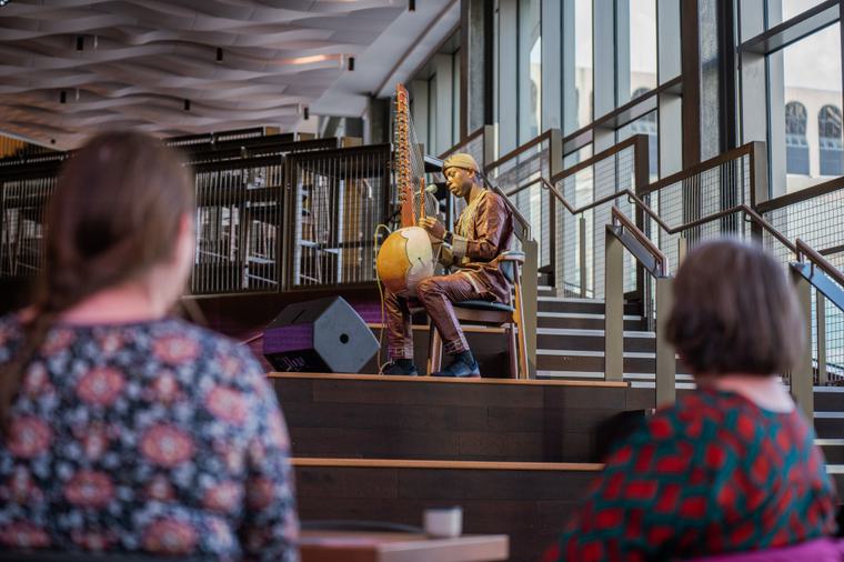 Today B:Music hosted the first incredible performance of our new series of free lunchtime events in partnership with Celebrating Sanctuary Birmingham (CSB). Once a month, CSB will be presenting some amazing World Music artists from across the country, in the newly refurbished foyer of Symphony Hall, a B:Music venue. CSB will bring you music originating from around the world including: Senegal, Zimbabwe, Guinea Bissau, Haiti and Iran.